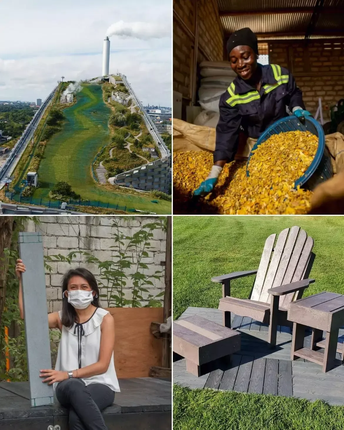 Some of our projects to end plastic waste: Holy Grail 2.0 (top left), Closing the Loop (top right), Planks of Promise (bottom left), and Firstar Fiber (bottom right).